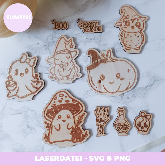 Halloween Laserdatei Bundle – SVG & PNG | Loops, Stecker & Anhänger mit handgemalten Illustrationen