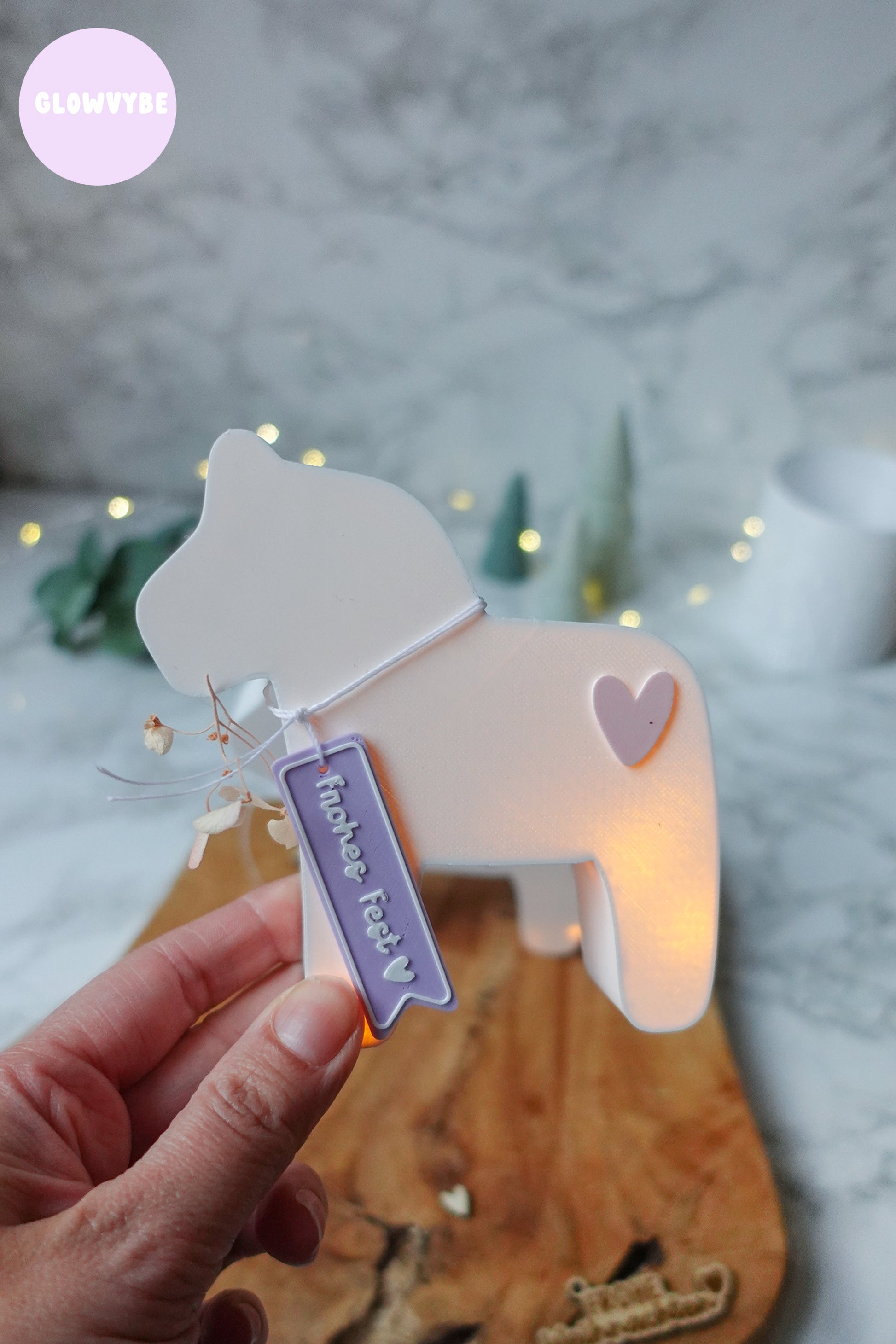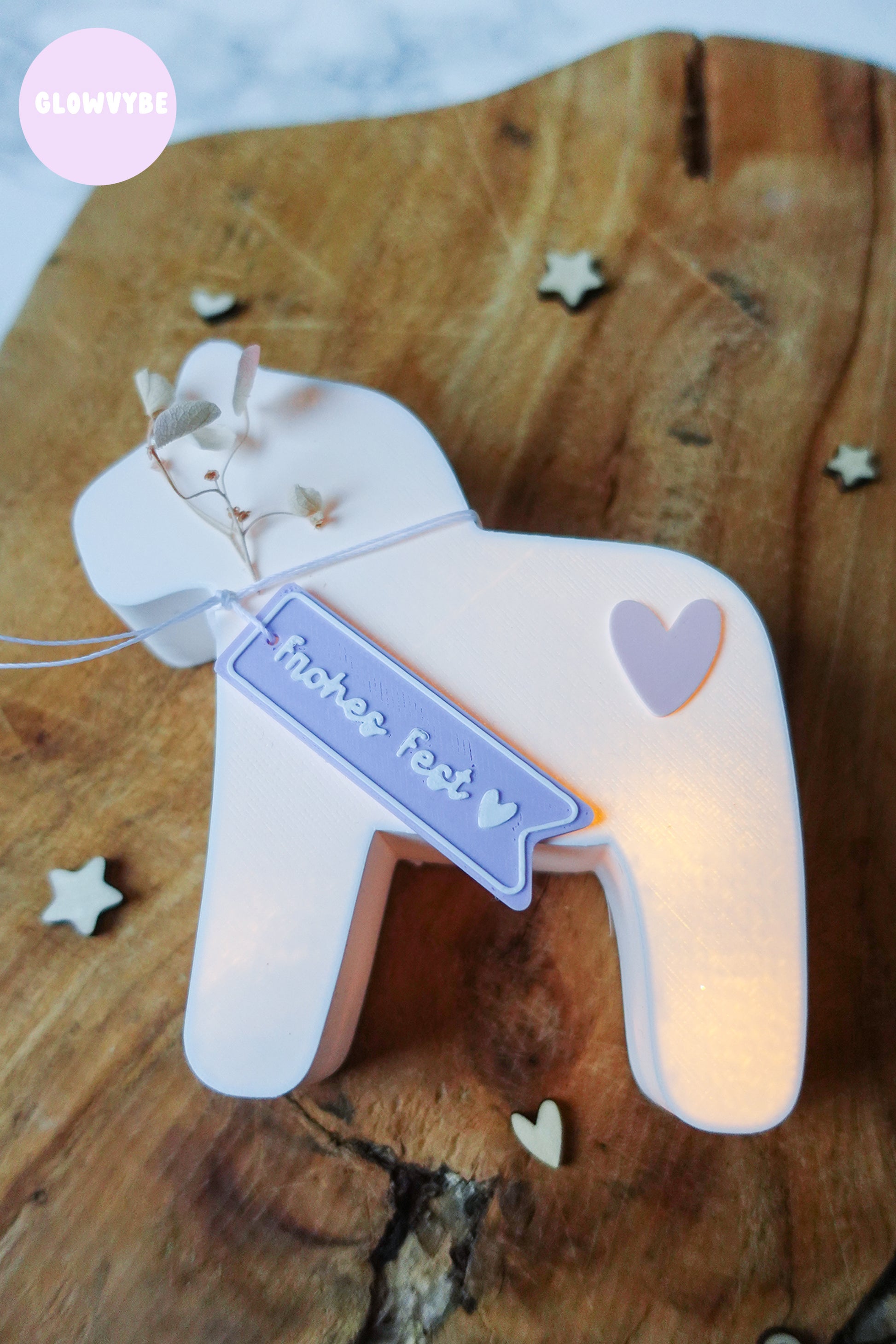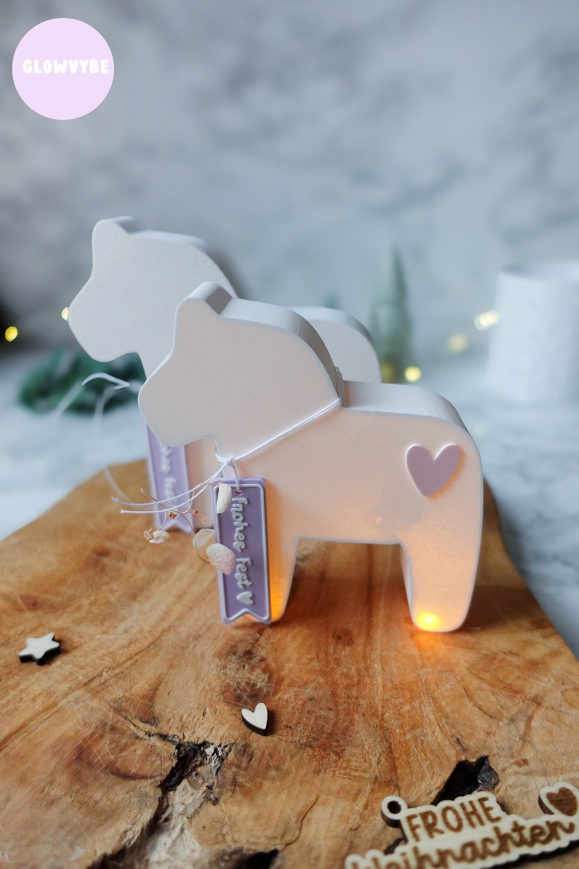 Das Dala Pferd bringt den Zauber skandinavischer Weihnacht direkt in dein Zuhause – schlicht, sanft leuchtend und mit einem Hauch Hygge. Ob in der schlichten Blanko-Version oder mit dem liebevollen Herzdetail: Dieses 3D-Druckmodell verleiht deiner Winterdeko eine moderne, nordische Note.