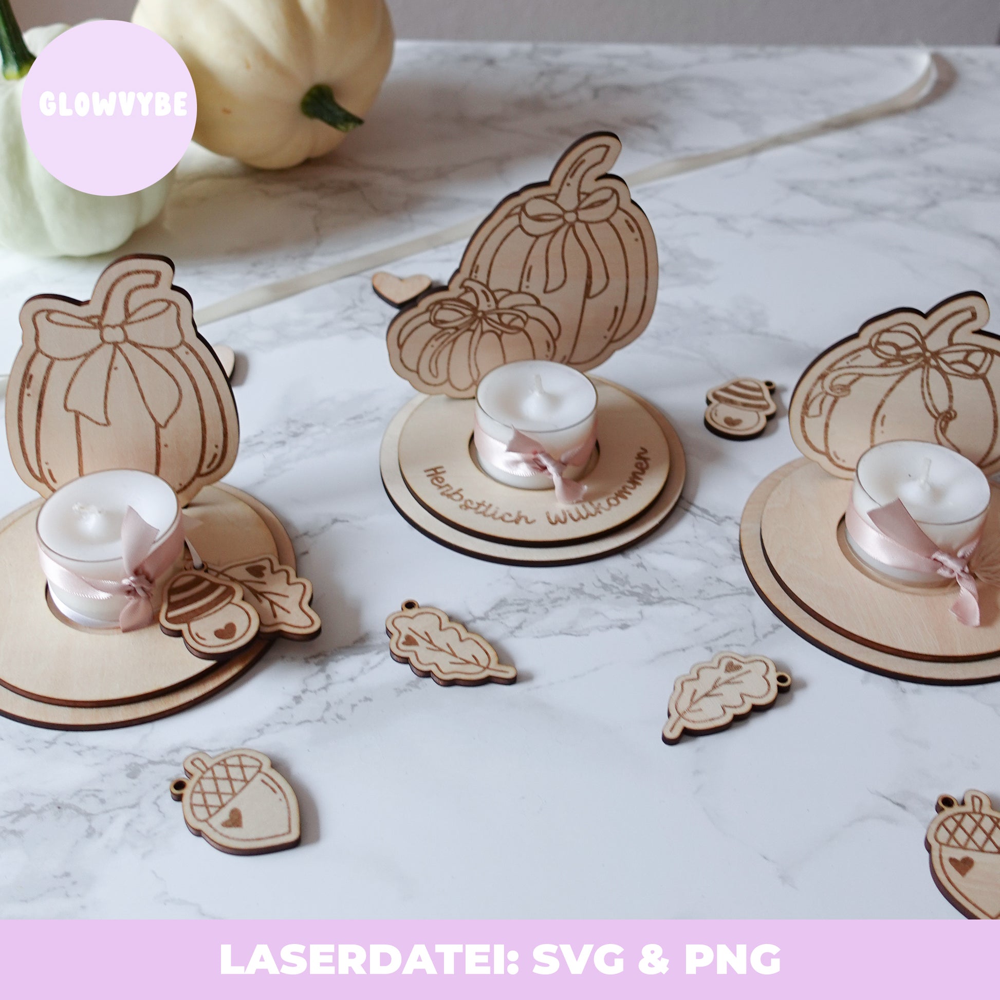 Herbstliche Teelichthalter – Laserdatei SVG & PNG | Kürbis-Deko, Herbstdeko, Handgemalte Illustrationen